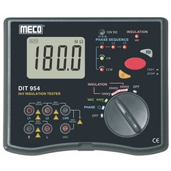 Want a versatile insulation tester for electrical diagnostics and maintenance? The Meco DIT 954 measures insulation resistance up to 200 GΩ, AC voltage up to 600 V, and checks phase sequence with visual and audio indicators. Its intuitive display, auto-range, and data-hold features make it easy for technicians to work efficiently. Suitable for industrial, commercial, and residential applications. Choose the Meco 5 kV insulation tester — purchase now!